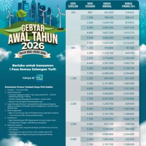 Bandar Lampung – d-actual.id Mengawali tahun 2026, PT PLN (Persero) melalui program spesial bertajuk “Gebyar Awal Tahun 2026, Tahun Baru Energi Baru” menghadirkan promo diskon 50% biaya tambah daya listrik…