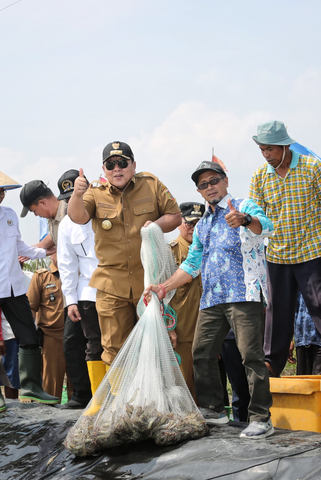 Gubernur Lampung Arinal Djunaidi melakukan Panen Udang dan serahkan bantuan Eskavator serta Kincir Air untuk Petani Udang di Dipasena, Rawajitu Timur, Tulang Bawang, Senin (13/11/2023).
