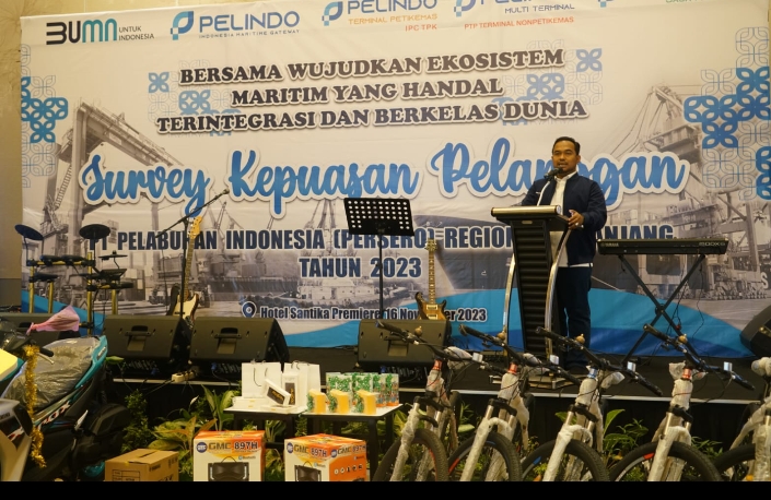 PT Pelindo (Persero) Regional 2 Panjang Gelar Survei Kepuasan Pelanggan (SKP) periode tahun 2023, bertempat di Hotel Santika Premiere, Kamis (16/11/2023). Adapun kegiatan ini bertujuan untuk introspeksi kinerja pelayanan dan untuk meningkatkan kinerja serta mengukur tingkat kepuasan pelanggan di PT Pelindo (Persero) Regional 2 Panjang mulai dari pelayanan Kapal, Pelayanan Petikemas dan Pelayanan Non Petikemas, dimana kegiatan ini merupakan agenda rutin setiap tahunnya. Kegiatan Survei Kepuasan Pelanggan (SKP) tahun 2023 ini mengusung tema “Bersama Wujudkan Ekosistem Maritim Yang Handal, Terintegrasi Dan Berkelas Dunia” yang dipimpin oleh General Manager Pelindo Regional 2 Panjang Imam Rahmiyadi didampingi Direktur Utama PT Pelabuhan Tanjung Priok Rino Wisnu Putro bersama dengan pimpinan anak perusahaan PT Pelabuhan Indoesia (Persero) Regional 2 Panjang yakni Manager Area PT IPC Terminal Petikemas Area Panjang Budi Daryono, Branch Manager PT Pelabuhan Tanjung Priok Cabang Panjang Eka Nugraha, Deputy Manager Unit Panjang Sub Holding Pelindo Jasa Maritim Untung Murdiyanto.