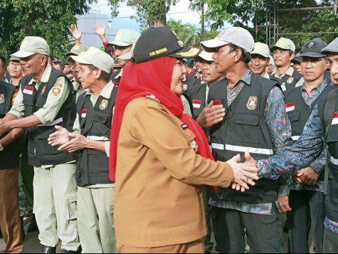 Hj. Eva Dwiana juga sangat mengapresiasi semangat dan antusias dari Linmas dan para Pamong yang hadir.