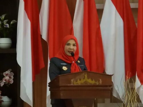 Walikota Bandar Lampung Hj. Eva Dwiana Memimpin Pengambilan Sumpah Jabatan Serta Melantik Pejabat Administrator, Pengawas, Kepala Sekolah Dan Fungsional Di Lingkungan Pemerintah Kota Bandar Lampung, Selasa (19/03/2024).