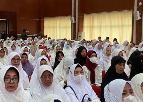 Walikota Eva Dwiana melepas ratusan peserta wisata religi yakni umroh, di Aula Semergou, Sabtu, 6 April 2024.