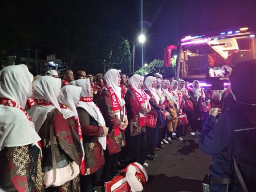 melalui program umroh gratisnya Walikota Bandar Lampung, Hj. Eva Dwiana pada Jum’at malam (19/4/2024) memberangkatkan 45 Jamaah umroh. raut bahagia dan rasa sukur para jamaah umroh yang berangkat terpancar dengan sangat jelas, Sejumlah keluarga yang mengantar juga turut berbahagia.
