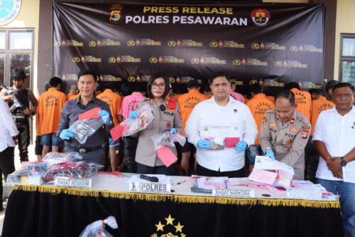 Pada hari Jumat, 24 Mei 2024, Polres Pesawaran menggelar kegiatan Press Release yang berlangsung di Mapolres Pesawaran. Acara ini dipimpin langsung oleh Kapolres Pesawaran, AKBP Maya Henny Hitijahubessy, S.H., S.I.K., M.M. Turut hadir dalam acara ini adalah Kasat Reskrim Polres Pesawaran, AKP Deddy Wahyudi, S.H., M.H; Kasat Narkoba Polres Pesawaran, Iptu Muhammad Nufi, S.,Tr.K; Kasi Humas Polres Pesawaran, Iptu Irwan Susanto, S.E; KBO Sat Narkoba Polres Pesawaran, Iptu Remon Ginting; Anggota Sat Reskrim Polres Pesawaran; serta para media se-Kabupaten Pesawaran.