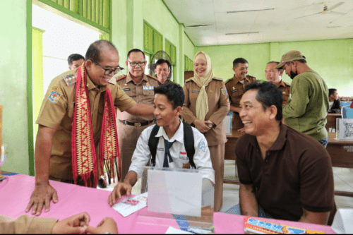 Penjabat (Pj) Gubernur Lampung Samsudin meninjau Pelaksanaan Penerimaan Peserta Didik Baru (PPDB) dan Daftar Ulang sejumlah sekolah di Kabupaten Lampung Tengah, Selasa (02/07/2024).