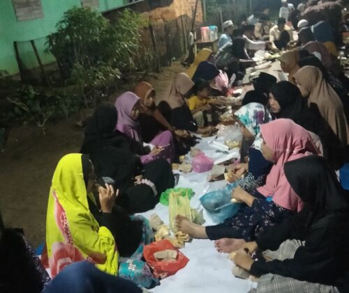 Meskipun hujan gerimis, warga yang terdiri dari orang tua, remaja, dan anak-anak tetap berbondong-bondong datang masakan dari rumah masing-masing. Makanan yang dibawa adalah nasi dengan lauk menu ingkung ayam kampung, yakni ayam kampung yang dimasak utuh untuk disantap bersama. Warga meyakini malam 1 Suro merupakan malam sakral sehingga harus disambut dengan doa bersama sebagai bentuk rasa syukur kepada sang pencipta.