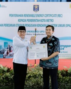 Ditandai dengan penyerahan REC secara langsung oleh General Manager PLN UID Lampung, Sugeng Widodo kepada Walikota Metro dr. H. Wahdi Siradjuddin, Sp.OG (K) pada Rabu (18/09), kini gedung kantor Pemkot Metro telah tersertifikasi menggunakan energi bersih sebanyak 72 unit atau setara dengan 72 megawatt hour (MWh) konsumsi energi listrik.