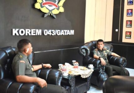Bertempat di Aula A.Yani Makorem 043/Gatam Jl. Teuku Umar Penengahan Bandar Lampung, Komandan Korem 043/Gatam Brigjen TNI Rikas Hidayatullah, S.E., M.M., Selasa (05/11/2024) menyambut Kunjungan Kerja Tim Pokja Kajian Strategis Staf Ahli (Sahli) Kasad Bidang Sosbudkumham dan Narkoba.