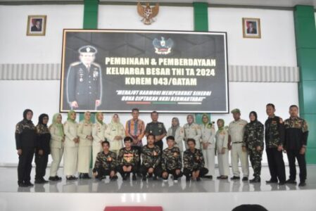 Bertempat di Aula Sudirman Makorem 043/Gatam Jl. Teuku Umar Penengahan, Bandar Lampung, Kamis (07/11/2024) Korem 043/Gatam menggelar Komsos Pembinaan dan Pemberdayaan Keluarga Besar TNI Tahun 2024, yang diikuti 80 orang terdiri gabungan dari FKPPI, HIPAKAD dan PPM, dengan tujuan memperkuat ikatan persatuan dan kesatuan dalam keluarga besar TNI.