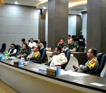 Komandan Korem 043/Gatam Brigjen TNI Rikas Hidayatullah, S.E., M.M., bersama Kapolda Lampung Irjen Pol Helmy Santika, S.H., S.I.K., M.Si., mengikuti rapat koordinasi perkembangan situasi dan kesiapan satuan wilayah dalam pengamanan, pemungutan dan penghitungan suara Pilkada Serentak Tahun 2024 secara virtual, Senin (25/11/2024) yang dipimpin Kapolri Jenderal Pol Drs. Listyo Sigit Prabowo, M.Si., dan Kasum TNI Letjen TNI Richard Taruli H. Tampubolon, S.H., M.M., bertempat di Gedung A lantai 4 Mapolda Lampung, Jl. Terusan Ryacudu, Way Hui, Kecamatan Jati Agung Kabupaten Lampung Selatan.