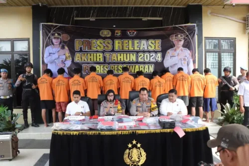 Lebih Lanjut, Kapolres memaparkan Kepada sejumlah awak media yang hadir bahwa jumlah tindak pidana di Kabupaten Pesawaran meningkat dari 492 kasus pada 2023 menjadi 515 kasus pada 2024 (kenaikan 4,67%). Namun, keberhasilan pengungkapan kasus juga meningkat signifikan dari 259 kasus (2023) menjadi 319 kasus (2024), dengan tren pengungkapan naik 23,16%.