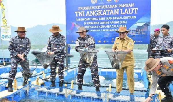 Sebagai wujud implementasi program Asta Cita Presiden RI Prabowo Subianto yang memantapkan sistem pertahanan keamanan negara dan mendorong kemandirian bangsa melalui swasembada pangan, Kepala Staf Angkatan Laut (Kasal) Laksamana TNI Dr. Muhammad Ali didampingi Ketua Umum Jalasenastri Ny. Fera Muhammad Ali meninjau program ketahanan pangan yang diselenggarakan TNI AL secara serentak di satuan wilayah TNI AL di seluruh Indonesia secara Vicon dan berpusat di Lampung. Senin (3/2).