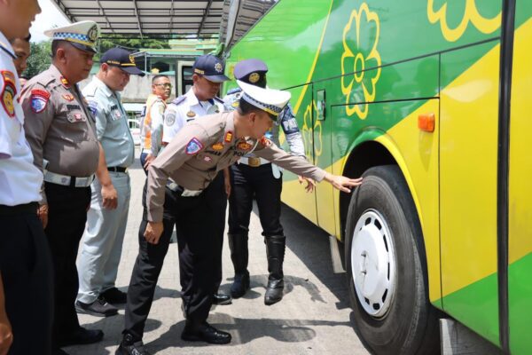 Operasi Keselamatan Krakatau, Polisi Periksa Kelayakan Bus Penumpang di Bandar Lampung