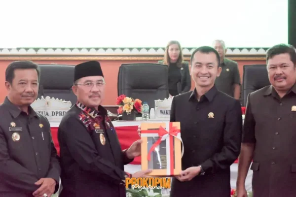 DPRD Kabupaten Pesawaran menggelar Rapat Paripurna dalam agenda Penyampaian Nota Pengantar 4 Rancangan Peraturan Daerah (Ranperda) Prakarsa DPRD Kabupaten Pesawaran. Kegiatan ini berlangsung di Ruang Sidang DPRD Kabupaten Pesawaran pada Senin (17/2/2025) dan dihadiri oleh Wakil Bupati Pesawaran Marzuki, Sekretaris Daerah Wildan, Ketua DPRD Achmad Rico Julian, para Kepala Perangkat Daerah, Forkopimda, serta jajaran anggota DPRD Pesawaran.