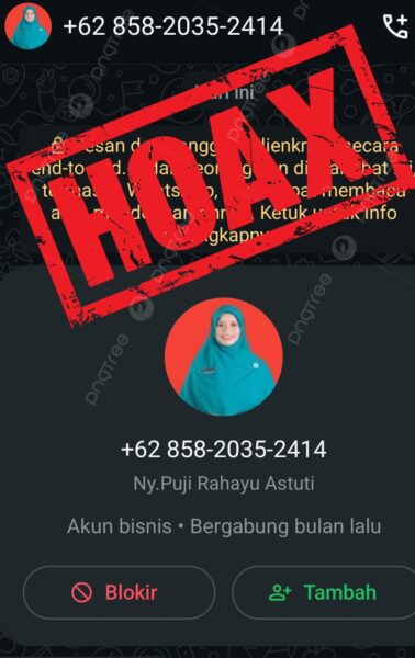 Kami menegaskan bahwa nomor telepon yang mengaku sebagai Rahayu Sri Astutik dan menghubungi sejumlah pihak untuk keperluan pribadi atau organisasi adalah tidak sah. Untuk menjaga integritas serta transparansi, kami mengimbau kepada seluruh pihak yang menerima panggilan atau pesan dari nomor tersebut untuk tidak merespons dan segera menginformasikan kepada pihak berwenang.
