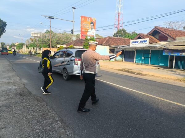 Dari dokumentasi yang terekam, tampak seorang petugas kepolisian Brigpol Puput Iswahyudi dengan sigap mendampingi seorang siswi menyeberang jalan utama. Tindakan ini menunjukkan komitmen Polri untuk tidak hanya menjaga kelancaran lalu lintas, tetapi juga memastikan setiap individu merasa aman di jalan raya.