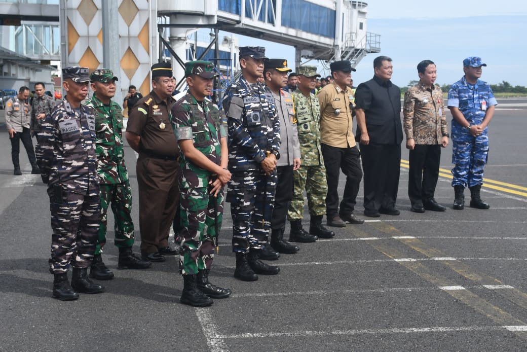 Komandan Lanal Lampung, Kolonel Laut (P) Krido Satriyo menyambut kunjungan kerja Kepala Staf Angkatan Laut (Kasal) Laksamana TNI Dr. Muhammad Ali beserta rombongan di Bandara Radin Inten Lampung.