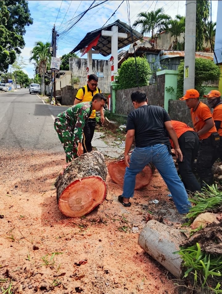Dalam waktu singkat usai mendapat laporan, Sertu Heri Hermawan, Babinsa Kelurahan Enggal Koramil 410-05/TKP, langsung bergerak cepat menuju lokasi pohon tumbang di Jalan Hos Cokroaminoto, Sabtu (25/10/2025) siang. Kejadian yang dipicu angin kencang ini sempat membuat khawatir warga karena pohon berukuran besar tersebut menimpa sebuah mobil.