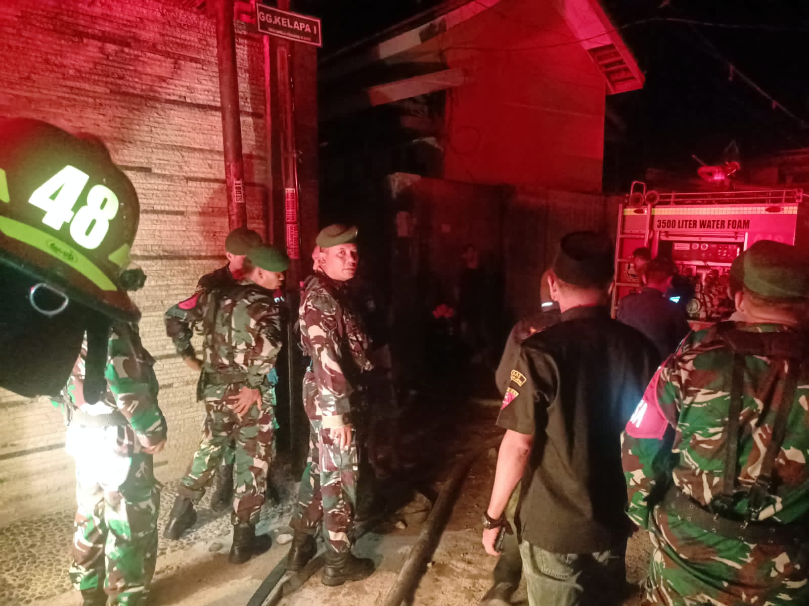 Dengan sigap, Babinsa yang bertugas segera melakukan pemantauan langsung ke lokasi kejadian untuk memastikan situasi dan mengkoordinasikan langkah-langkah penanganan. Kehadirannya di tengah kobaran api menjadi simbol ketegaran dan kepedulian TNI terhadap keselamatan warga binaannya.