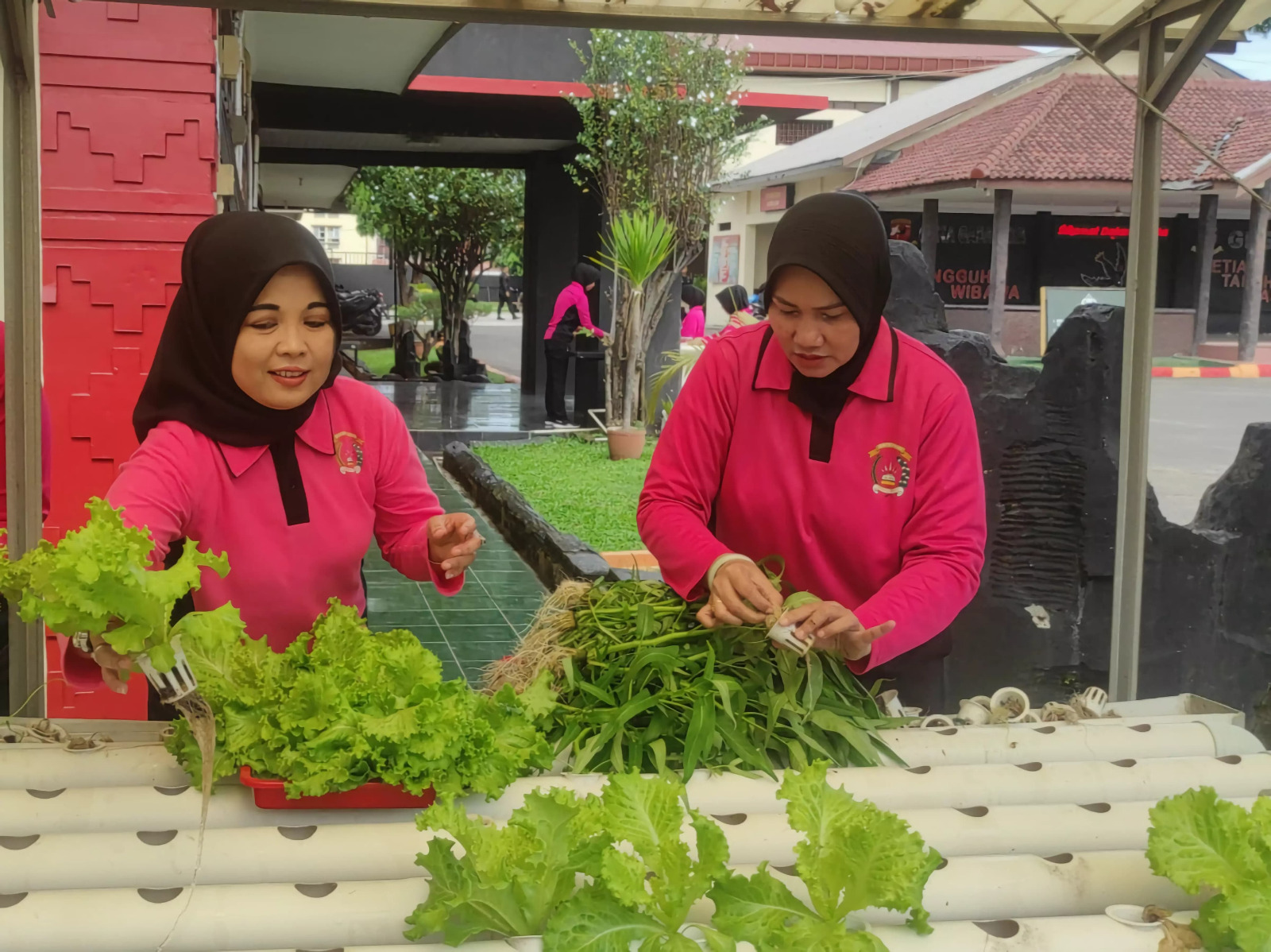 Dalam kegiatan tersebut, para pengurus Bhayangkari melakukan perawatan berbagai jenis tanaman sayuran dan tanaman hidroponik yang tumbuh subur di area P2L.