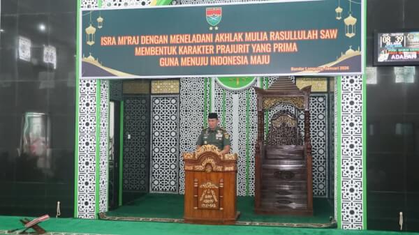 Dalam sambutannya, Pangdam XXI/Radin Inten, Mayjen TNI Kristomei Sianturi, S.Sos., M.Si, (Han) menekankan, pentingnya menjadikan peringatan Isra Mi’raj sebagai momentum untuk memperkuat keimanan, meningkatkan disiplin, serta membangun akhlak mulia dalam kehidupan sehari-hari, khususnya dalam pelaksanaan tugas sebagai prajurit TNI.