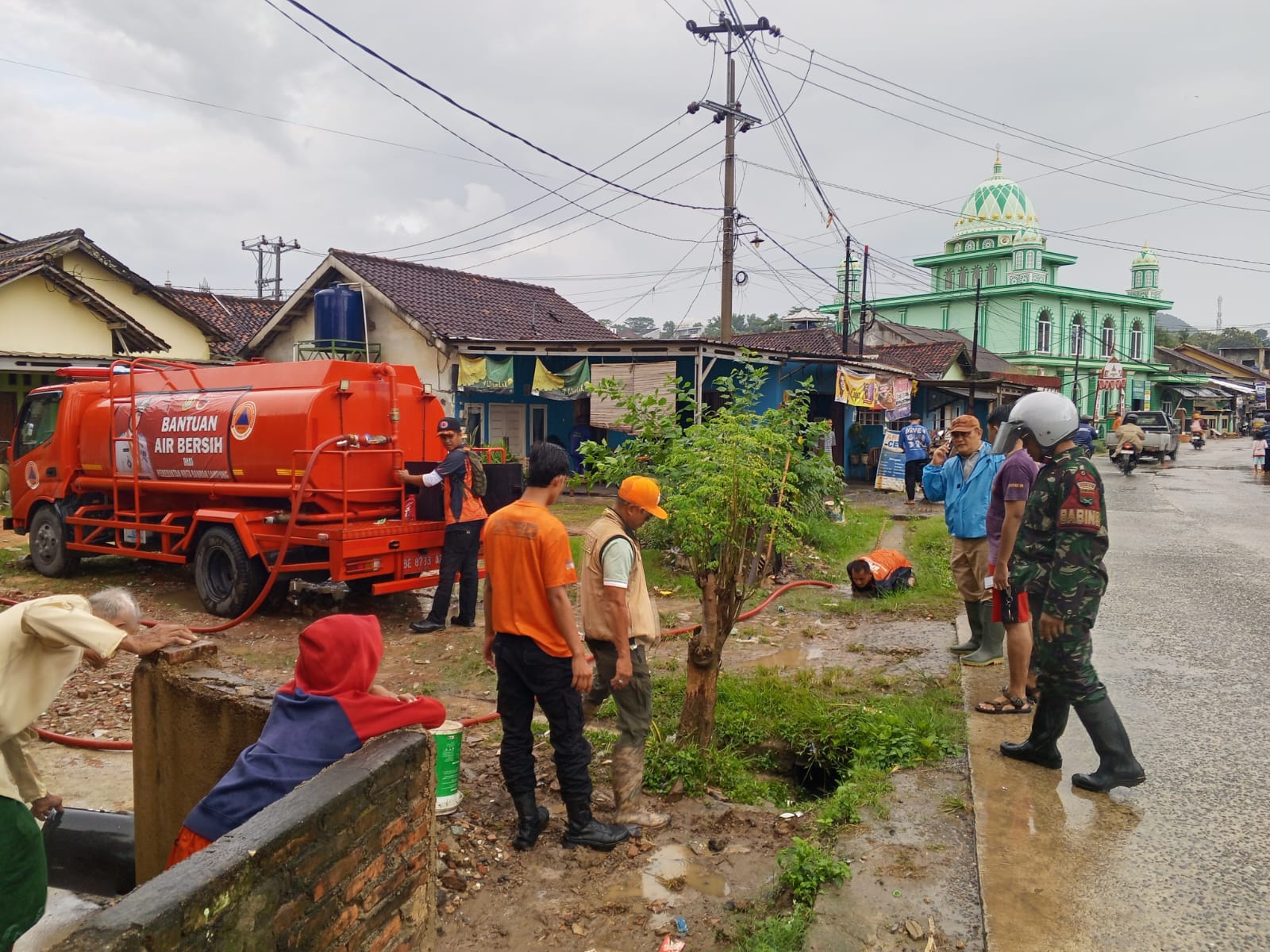 Cuaca ekstrem dengan hujan deras yang melanda wilayah Kota Bandar Lampung, Selasa siang (3/2), berimbas pada terjadinya sejumlah bencana di Kelurahan Campang Raya. Bersama dengan tim gabungan dari pemerintah daerah dan instansi terkait, Babinsa setempat, Sertu Andreswan dari Koramil 410-01/Panjang, segera bergerak untuk memantau dan menangani lokasi-lokasi terdampak.