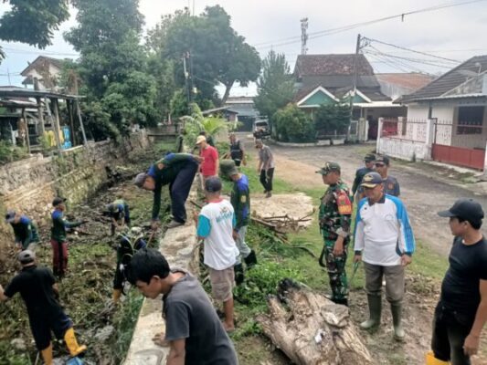 Babinsa dan Warga Keteguhan Gotong Royong, Cegah Banjir di Musim Hujan