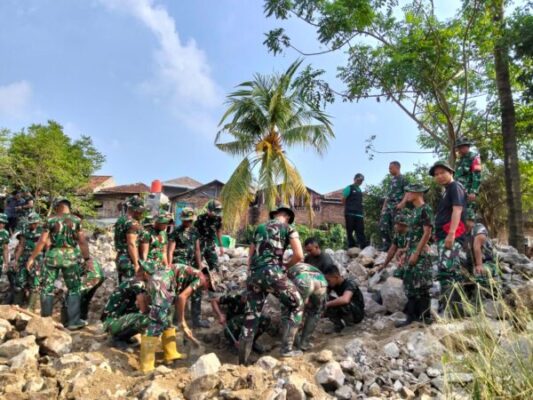 Salah satu aksi terbaik ditunjukkan oleh Babinsa Kelurahan Garuntang, Pelda Sulindra, dari Koramil 410-02/Teluk Betung Selatan. Pada Minggu, 19 April 2026, ia memantau langsung proses pemecahan runtuhan tembok penahan air yang roboh pasca banjir besar pada Selasa, 14 April 2026 di Jalan Pandawa RT. 06 LK. I, Kelurahan Garuntang, Kecamatan Bumi Waras.