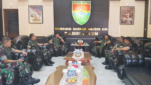 Pangdam XXI/Radin Inten, Mayjen TNI Kristomei Sianturi, S.Sos., M.Si. (Han), menerima Kunjungan Kerja Danpusterad, Letjen TNI Mochamad Syafei Kasno, S.H., yang dilaksanakan di Lobby Makodam XXI/Radin Inten, Kamis (23/04/2026).