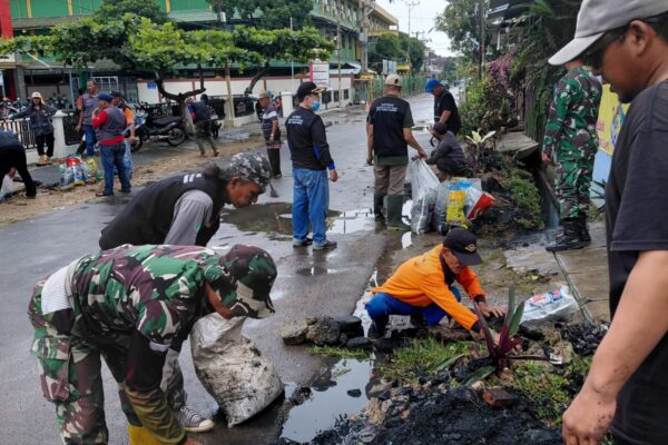 Babinsa dan Warga Campang Jaya Gotong Royong, Bersihkan Saluran Air